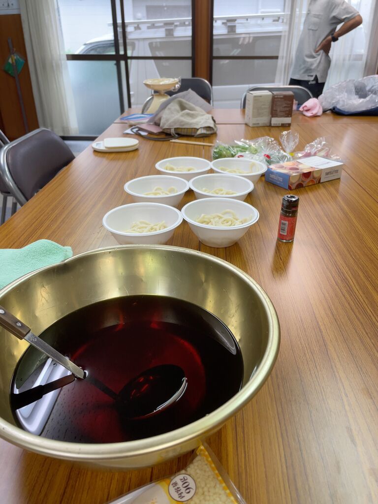 うどんの出店は初めての事なので,先月,連合事務局の中で